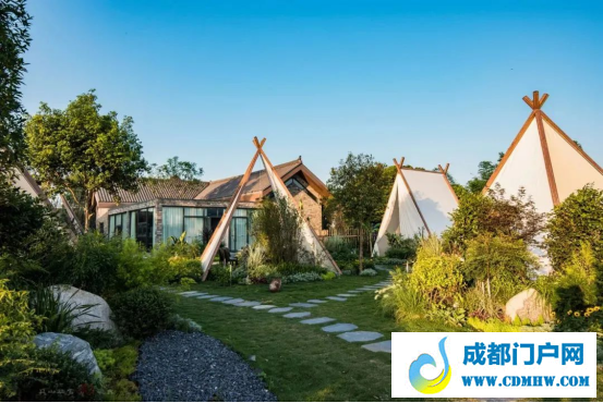 昔日废弃大窖纸厂办公楼、住宿楼和生产厂址,摇身一变,辅以现代化的手法,在林盘的掩映中,空间变得奇妙。或品尝特色餐饮,或体验禅修茶道,或感受农耕文化……园中划分出的多个不同主题的游玩区域,可尽享高端养生度假生活。